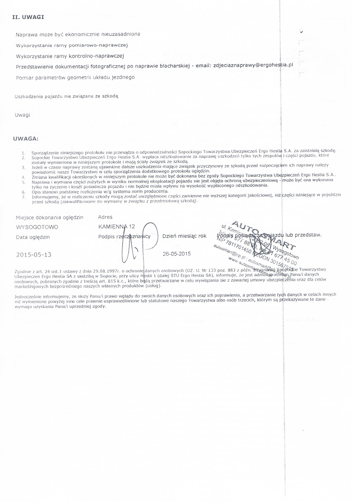 Dla ciekawskich protokół szkody z MTU: