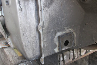 W przednim prawym nadkolu znalazła się też dziura - oczywiście już wokół blacha jest wycięta i wspawana łata.