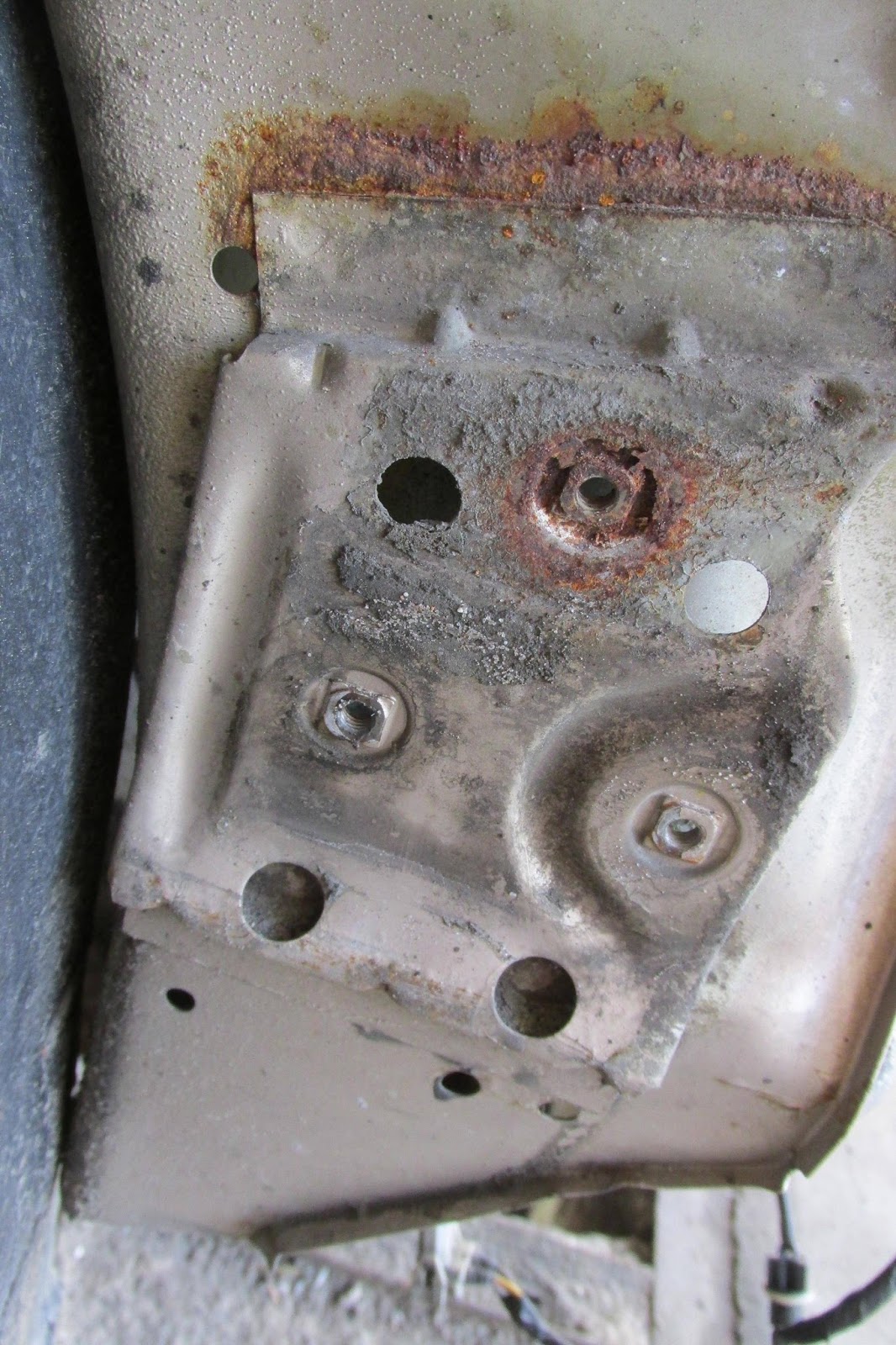 Złota jest już w Gryfinie u Orła. Na początek wstępna ocena stanu podwozia. Jak się okazuje, jest lepiej niż myślałem. Spód nie jest mocno skorodowany. Standardowo miejsca zgrzewania progów się sypią, do tego kilka mniejszych rzeczy, ale już np. zaślepki tylne w podłodze są bardzo ładne. Mocno zgnite są za to przewody paliwowe.
