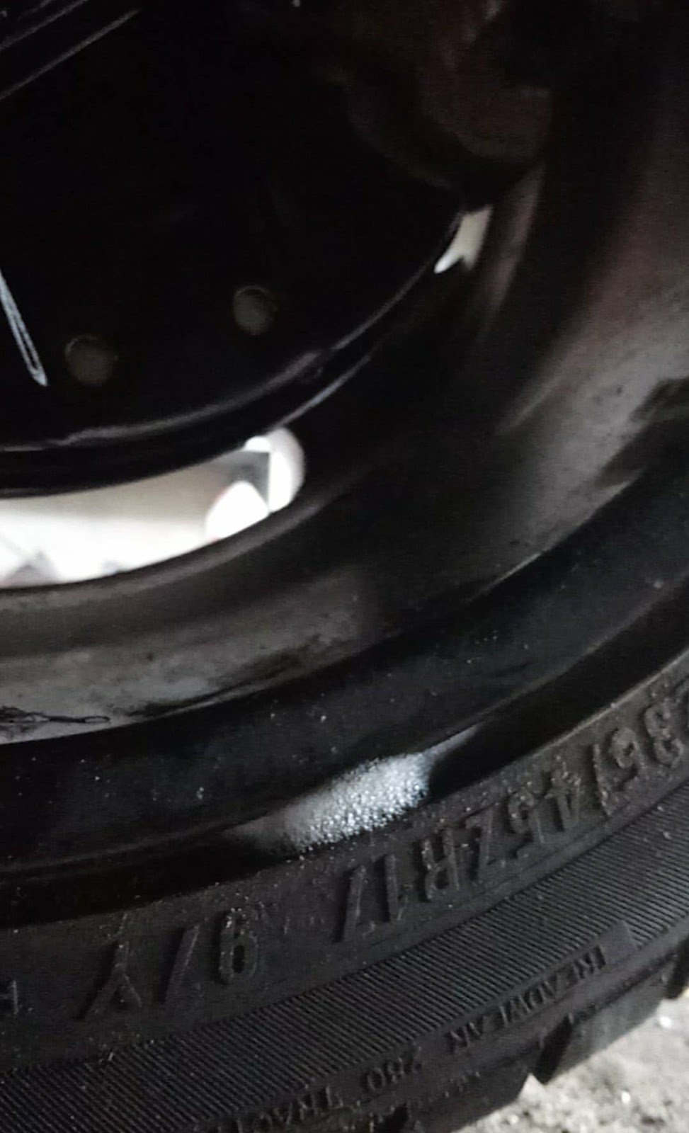 Jadąc do Orła najwidoczniej musiałem przebić oponę. Lewa przednia ma delikatne pęknięcie - niewidoczne gołym okiem, ale wystarczające, aby powoli uciekało powietrze. Mała to strata, bo planowany zestaw hamulców i tak wymusi zmianę średnicy felg na 18 cali, a co za tym idzie, opony i tak muszą być wszystkie nowe.